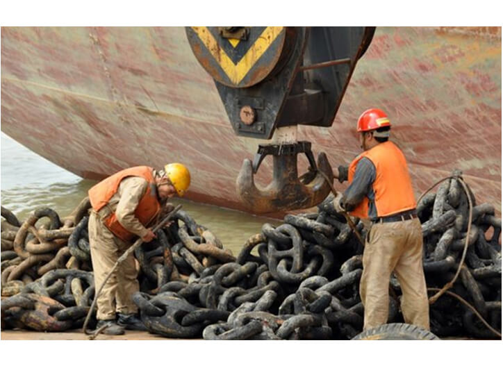 錨是一種鋼鐵制造的停船器具,沒有錨,船舶就無法停穩(wěn)。而對于鏈接船舶與錨的錨鏈,則更為重要,沒有錨鏈,錨就與船舶無法連接,錨的作用也就失去了意義。有時(shí),船舶與船舶之間的錨鏈會(huì)因?yàn)楦鞣N原因相互纏繞在一起。